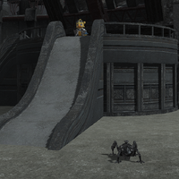 At the cliff, Alpha marvels up at the southern sky, while Omega stands beside him. After a few moments, Omega walks away and continues to face away, to the north. Neither Alpha nor Omega will respond to the player's presence.