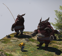 Alpha sleeps among the sheep near the NPC Ligdan, while Omega rests next to Ligdan on a rock. Alpha will awaken if the player approaches, and will drift back to sleep when the player is out of range.