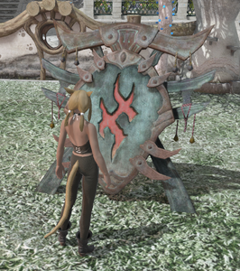 A pavis shield of iron used by the Amalj'aa to fortify their strongholds.