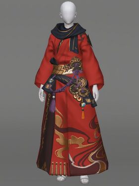 “Crafted into the haori-and-hakama style by armorers of the longstanding Myochin clan, this set of armor is common garb for present-day samurai. Whilst it appears little more than a decorative kimono, the cloth is woven in such a way as to promote the flow of aether.