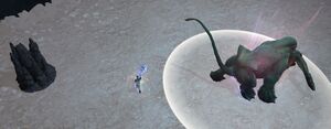A room-wide AoE that hits every player that has a direct, unblocked line of sight to the enemy casting this. Players must stand behind an object, often a large rock, to shield themselves from the incoming blast. Failure to take cover is often fatal.