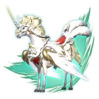 The emergent studies of winged horses had to be rewritten with a single sighting of Astrope, confirming that adult pegasi are not only enormous in size, but also possessed of a horn. Wary of most, Astrope only allows those of gentle heart to climb upon its back─a back large enough to seat two!— In-game description