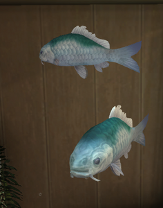 Is it a blue carp that came to thrive amid like-colored waters, or a carp that became blue in order to thrive? Whether the trait was inherited or acquired, the distinct azure tint of this species blends perfectly into its native habitat.