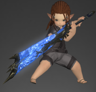 Bluespirit Guillotine is an item level 403 Dark Knight's Arm and can be used by Dark Knight. It requires being at least level 74 to be equipped.