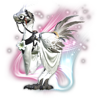 Raised by Ishgard's master breeders for beauty and purity of stock, its snow white feathers are natural and, though fully developed, as soft as down. Temperament-wise, the bird is remarkably docile and one of few breeds who will allow dual riders upon its back.— In-game description