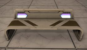 “A futuristic bench developed for use on distant stars. Though visually appealing, its unyielding surface has led more than one overworked initiative member to question whether the future must needs be "such a pain in the arse."