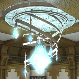 “The aether contained within the crystals used to construct this magnificent lighting fixture emits an ethereal glow which enhances the mood of any hall or parlor.