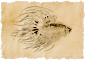 Sprouting from this wavekin's body like rows of elegant horns are its stygian fins, which resemble naught so much as the imperial diadem. It is said that members of the royal family once fought to acquire this wavekin, that they might be first to present it to the emperor as a show of fealty.