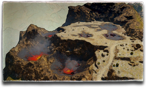 It was Valigarmanda's fiery breath which carved these yawning craters, the blackened rocks yet flickering with an intense, incendiary aether known to attract gas-based abominations. If roaming bombs were not enough to discourage would-be sightseers, the gruesome Yok Huy name roughly translates to “the land of scorched and gouged out eye sockets.”