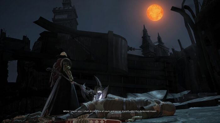 | Voiced cutscene | Fandaniel: Those Eorzeans certainly are a stubborn bunch, though I suppose you knew that already. Fandaniel: My plan to redirect the aether from Carteneau came to a rather less-than-satisfactory conclusion. It was, in many respects, an abject failure. Fandaniel: Which does of course raise the question of where we are going to procure the requisite amount. The obvious solution would be to draw on resources a little closer to home, though that would require our dreamer to dream a trifle more deeply... Zenos yae Galvus: So be it. The dreamer will not complain. Fandaniel: Then let us begin the preparations at once. With the “gateway of the gods” complete, all that remains is to gather the necessary aether, and our prize shall be within reach! Fandaniel: The time has come to fulfill your heart's desire! My desire! Fandaniel: To relieve those wretched creatures of their meaningless existence! Zenos yae Galvus: While I await you, I shall drink a sea of souls and gorge myself upon the darkened moon.