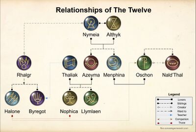 - While the Description of Oschon states that Nald'thal is his brother, the Creation Myth states that Oschon created Nald'thal out of Magma.