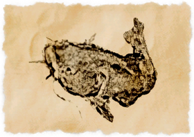 A large variety of air-breathing catfish. Its near-frictionless scales allow it to swim through the sand as a normal fish would through the water. As it traverses the sands, it will swallow a great deal of the stuff, filling the creature's belly and making it appear much larger than it actually is.