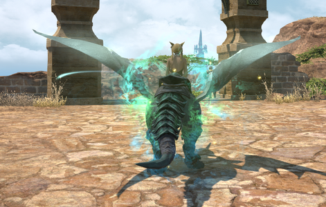 Called forth by a mysterious horn infused with the power of an unknown primal absorbed by the Emerald Weapon. Whether it sees through the glowing orb at the front of its snout or some other means is unclear.— In-game description