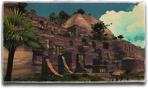 Quarried here by the wagonload, the purple-streaked stone known as “giantsgall” is one of Thavnair's most coveted exports. Incredibly dense and possessed of high aetherial conductivity, it is prized not only as a building material, but also as a component in the crafting of unyielding arms and armor, and the brewing of alchemical concoctions.