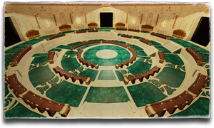 In order to accommodate the ninety-nine members of the Forum, the seating in their assembly hall is arranged in the shape of a spiral. Viewed from above, one is reminded of the symbol emblazoned upon the Sharlayan flag─the nautilus shell that keeps the water of knowledge.