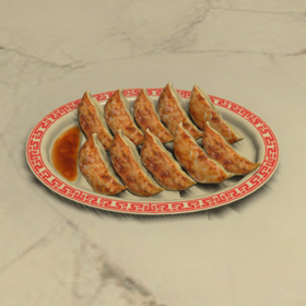 “While boiling is the norm in Yanxia, Kugane culinarians prefer to crisp these crescent-shaped dumplings in a pan before serving.