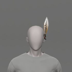 - This item's design is likely meant to reference the Draught Chocobo mount - the feather is yellow with a white tip, like the Chocobo's feathers; the red piece matches the barding on the front of the Chocobo; and the long metal piece matches the Chocobo's headpiece.