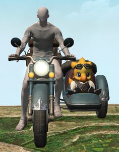 A variant of the Garlond GL-I, this magitek vehicle is fitted with a sidecar to allow for two riders, with engine displacement increased to handle the additional weight. Comes with a life-size mascot lovingly crafted by Wedge─but strictly for a limited time only, and while stocks last!— In-game description