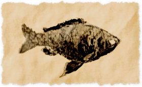 This bright-yellow fish is native to Gyr Abania and found in both the Hathoeva and Velodyna rivers, sometimes as far west as East End.[Suitable for printing on small canvases.]