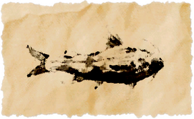 The black and yellow splotches that cover this wavekin's body bring to mind the gaudy costumes of clowns and jesters. Yet far from serving to entertain, these vibrant colors warn predators that the lancer's flesh is filled with deadly toxins.