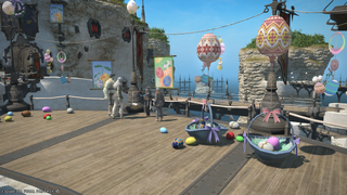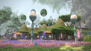 Players can enter the seasonal event solo instance Sprig Cleaning by speaking with the Egg Usher in Old Gridania (X:10.1, Y:9.0). In this instance, players have 3 minutes to destroy leafkin using special scythe actions and collect Archon Eggs to aim for a high score. Based on their score, they will earn Special Brilliant Eggs that can be exchanged with the Dreamer in Old Gridania (X:10.3, Y:9.1) for several cosmetic rewards. It costs a total of 260 eggs to buy one of each reward (minus the magicked prism).