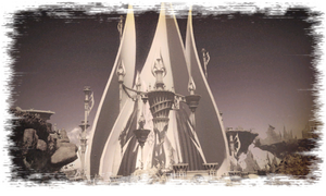 A majestic fortress in Hraesvelgr's domain, watched over at the great wyrm's behest by the moogles who make their home in the Churning Mists. Though the years─a thousand of them─have taken their toll, it still stands proud and strong, stirring the heart of all who lay eyes upon it.
