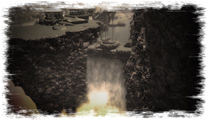 As the Thaliak River stretches north towards the Orn Wild, it spills over this grand waterfall. In the past, students would compete to see who could swim closest to the cataract's edge without succumbing to its powerful torrents. A ban on entering the waters was eventually imposed after too many accidents.