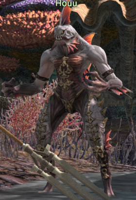 Houu is a Sahagin in Western La Noscea. He is the spawnling of Novv, clutchfather of Novv's Nursery in Western La Noscea.