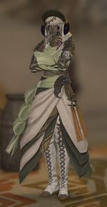 An udgan of the Uyagir, a tribe which lives in the caves north of Nhaama’s Retreat. She and her brethren endeavor to live a frugal life, away from the trappings of luxury. Though she has only seen thirty-two summers, Ibakha’s ability to see one’s future is already known far and wide. However, those who seek knowledge of their past, such as the Dotharl, will find that she is unable to help.