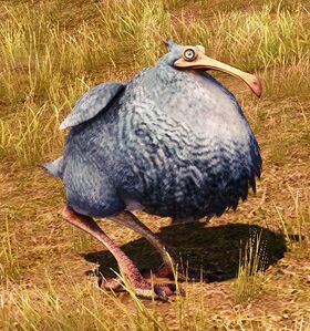“Largely inhabiting the island of Kholusia, these stocky birds are thought to be related to the Source's dodo, as not only are they similar in appearance, but they also spew a poisonous gas when threatened. Perhaps this miasma, much like the rail's plumage, differs slightly from that of tis kin in the Source—though none have yet been willing to breathe deeply enough to find one.