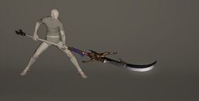 “Technically not a spear, but a long-hafted blade of Far Eastern origin known as a “naginata,” Iwa-toshi was used for many years in the defense of a sacred Doman temple until its wielder died and the weapon was sealed in the temple’s sacristy. When the temple was destroyed during the Garleans’ religious purge, the relic was confiscated and presented to a high-ranking military official.