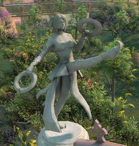 “Known as the mother of the Kriegstanz, Kadjaya is honored in both name and form at this open-air stage for dancers. Those who carry on her legacy perform here beneath her stone-carved likeness, strutting and twirling for the glory of their gods and ancestors.