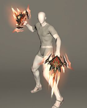 “"When cataclysm loomed over the Near East, the hero Mirza arose to defend the people from fell fiends. Once he had torn the monsters apart, he raised a mighty empire—and fashioned a pair of weapons such as these from his foes' claws!"