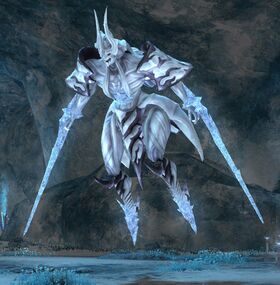 “Encountered in the frozen wasteland of Eureka Pagos, this formidable voidsent employs his immense arcane strength to condense blades of ice from the surrounding aether. Scholars have yet to perform a comprehensive study, but the presence of numerous underlings suggests that in the voidsent hierarchy, Louhi holds at the very least the rank of lesser noble.
