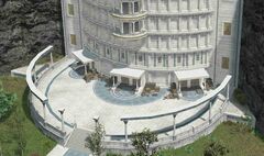 “Located directly below upper Acrinthos, this facility is concerned with the efficient transportation of delivered goods. The cargo lift inside the structure is in constant motion, moving both incoming and outgoing shipments.