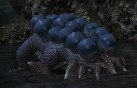 Lured Ninki Nanka is a Ninki Nanka in The Dravanian Forelands. The Lured Ninki Nanka is encountered during the Vath Daily Quest All about the Eggs. After getting the Nail Shrimp from the fish trap and place it in the designated spot, 2 Lured Ninki Nanka will attack the player. They can use Stagnant Spray, a conal AoE at the front, and Bog Bomb, a circular AoE on the player.