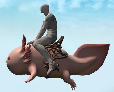 The fact that this impossibly large ambystoma is fitted with an elaborate saddle strongly suggests it was created to be ridden. However, its presence in Pandæmonium means it was flawed in some way and deemed a failure.— In-game description