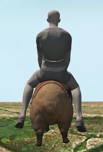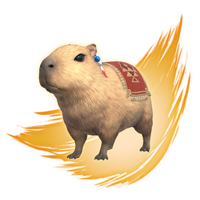 This fully grown mehwapyarra (“capybara” in certain other parts) was wandering alone in Shaaloani when it was attacked and swallowed whole by the tural vidraal Ttokrrone. Fortunately for the creature, you appeared and put down its devourer before it could be digested, and it now lends you its back out of a sense of duty.