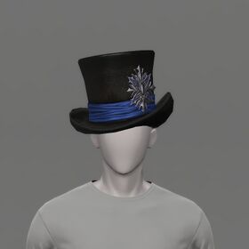 “Particularly when coupled with its matching feathered mask, this handsome top hat with its high, cylindrical crown is allegedly a "must-have" for any "blue mage of mystery."