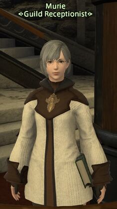 Murie is the Hyur guild receptionist at Mealvaan's Gate, the Arcanists' Guild in Limsa Lominsa Lower Decks.