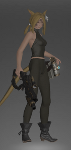 Created at Ishgard’s Skysteel Manufactory, the nightsteel blunderbuss is not actually a blunderbuss—a type of firearm that is defined by its long, flared bore—but a modern handgonne. It earned this misnomer from the retractable flared scope which rests above the barrel.