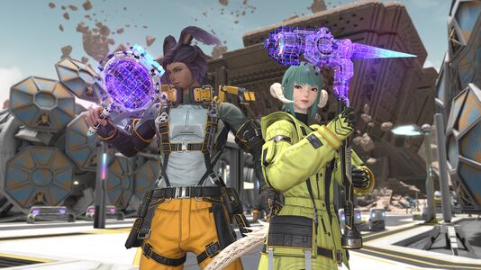 “First detected within the sights of the Stellascope, this mineral-rich planet lies five-and-a-half carrots from Etheirys's star system. Oizys is wracked with gravitational anomalies slowly tearing apart its surface, where shattered rocks float above strange ruins, seemingly left behind by some long-departed civilization.