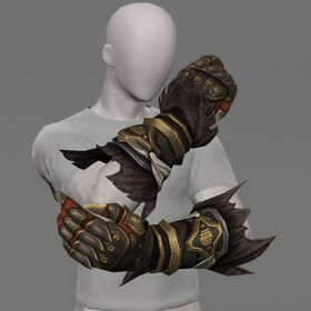 Paglth'an Armguards of Striking is an item level 505 hands and can be used by Pugilist, Monk and Samurai. It requires being at least level 80 to be equipped.