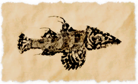 This variety of freshwater fish has the queer habit of wearing the skulls of small drowned animals, though it is not known exactly why. Some believe that they are used to intimidate other plaguefish who seek to claim their territory. Others believe that they are messengers of Thal, beckoning lost souls to the afterlife.