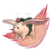 “Unlike its kin, this porxie was born without the ability to cure the tempered. Rather than have it go to waste, however, it was made into a mount and given a crown─perhaps to evoke a sense of luxury and comfort.