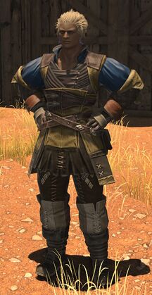 Refinery Engineer: You're not from Tural, are you? I have a feeling your worldly experience will come in handy. Refinery Engineer: As you may have noticed, we produce a lot of ceruleum here. But did you know that the resin that comes as a by-product can be used to make carbon fiber? From what I hear, outfits woven from the stuff are all the rage over in Ilsabard. Refinery Engineer: Hoping to keep up with the latest trends, we've made some of this fiber ourselves, and even made a set of work clothes from it. I was hoping you could act as our model. Refinery Engineer: Once you're all dressed up, I'd like you to get the opinion of the Pelupelu cloth merchant down at the station, and find out if there's money to be made from such a design. Just let me know when you're ready!