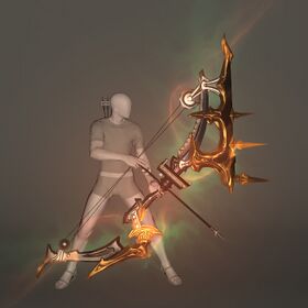 With locks a-flowing like the tail of a fiery comet, and skin the crimson of an autumn eve, it is no wonder renowned Hellsguard archer Early Harvest is oft called the “Rose.” To celebrate both her skill and beauty, master Weaponsmith Gerolt Blackthorn crafted Rosenbogen, mayhap with a foolish longing that in return she might permit him “fill her quiver” as well.
