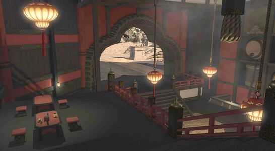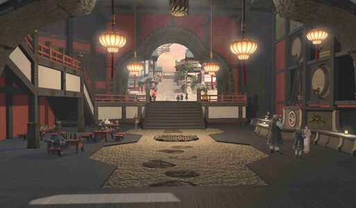 A towering tavern─the largest in Kugane─favored by local merchants and dockworkers and foreign visitors alike. Guests can indulge in Far Eastern cuisine made with the freshest seafood while sipping on fine rice wine imported from Koshu, the main island of Hingashi.
