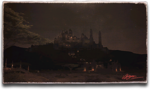 The commercial hub of Ul'dah is organized strategically around the dome-shaped citadel at its center. Its towering fortifications and protective outer walls bedighted with myriad glass panes and colorful mosaics are visible for malms in all directions, and serve as a stark, yet dazzling deterrent to would-be besiegers.