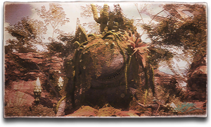 Local legend claims the Lonely Giant is everything from the ghost of a Sil'dihn sultan, to the prototype for a new model of Garlean machina. Ul'dahn scholars, however, simply believe him a Coerthan goobbue who lost his bearings during the chaos of the Calamity, and after a long journey through the Black Shroud, died of exhaustion upon reaching Thanalan.